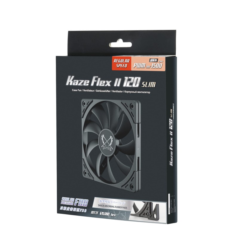 - SCYTHE newly designed Kaze Flex II 120x120x15 m High-performance PWM fan, Sleek slim design, low-noise focused design, long term durability with top-tier craftsmanship.
