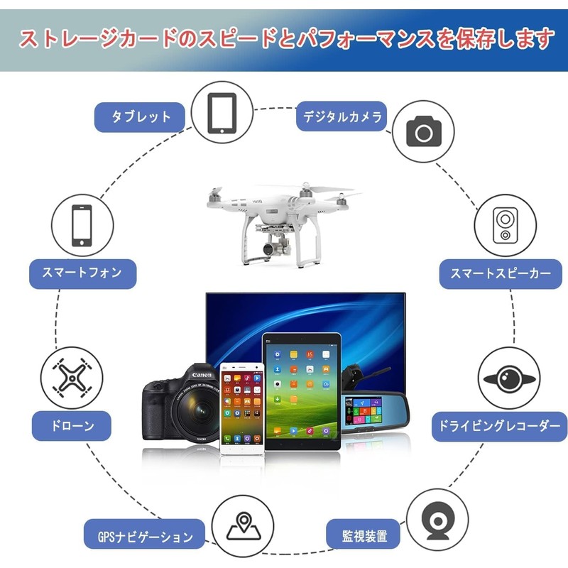 - スマートフォンやタブレットでのスムーズなアプリケーション使用に最適なA1グレード,高解像度の画像や動画を簡単に転送