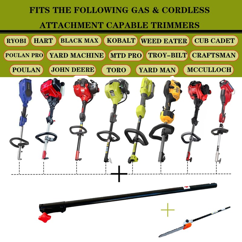 - Fits for:Ryobi,Homelite,Hart,Black max,kobalt,Weed Eater,Cub cadet,Poulan pro,Yard machine,Mtd pro,Troy-Bilt,Craftsman,Poulan,John Deere,Toro,Yard man,Mcculloch,DE WALT,Hus 128LD most gas & cordless attachment capable systems