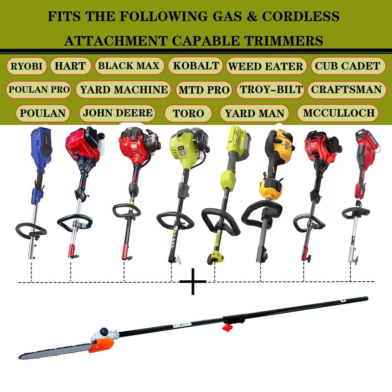 • Fits for:Ryobi,Homelite,Hart,Black max,kobalt,Weed Eater,Cub cadet,Poulan pro,Yard machine,Mtd pro,Troy-Bilt,Craftsman,Poulan,John Deere,Toro,Yard man,Mcculloch,DE WALT,Hus 128LD most gas & cordless attachment capable systems