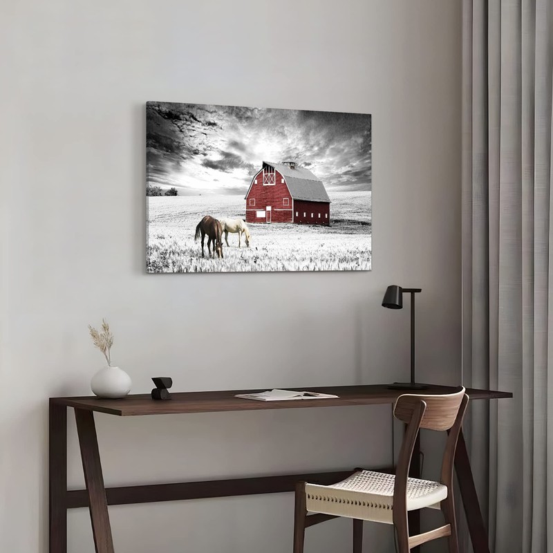 • Beautiful Scenes: The farm canvas painting uses two tones black and white to draw lazy horse and area barn. The unique farm canvas wall art can add an artsy to your house and make the space more charming. A great printing design can improve your quality of life.