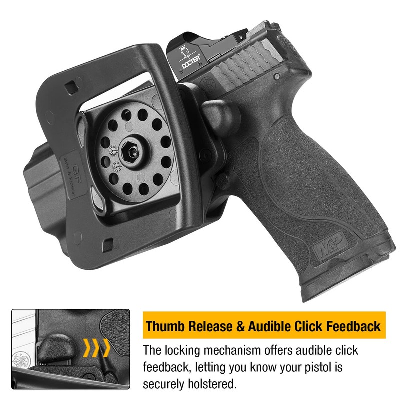 - 【COMPATIBILITY】 This thumb release holster is custom-made for S&W SD9 VE, SD40 VE, Smith & Wesson M&P 9MM/.40 M2.0 Full Size 4.25’’ and M2.0 Compact 4’’ 3.6’’. Our Injection molding tech machine ensures precision and consistency in shape and quality so that every holster will fit perfectly for pistols.