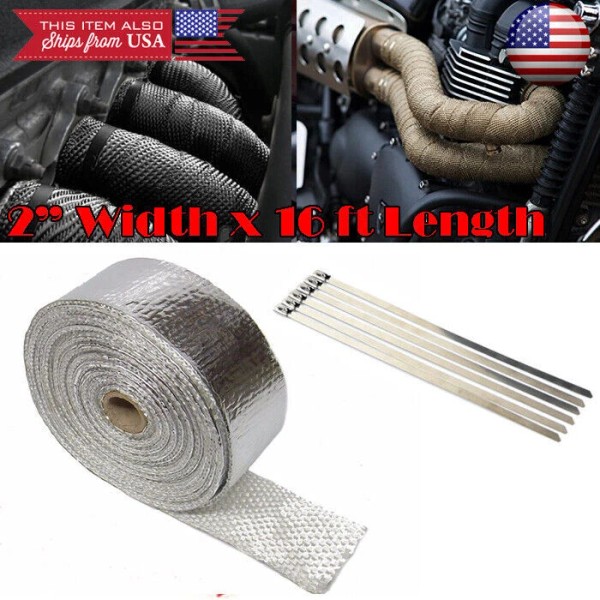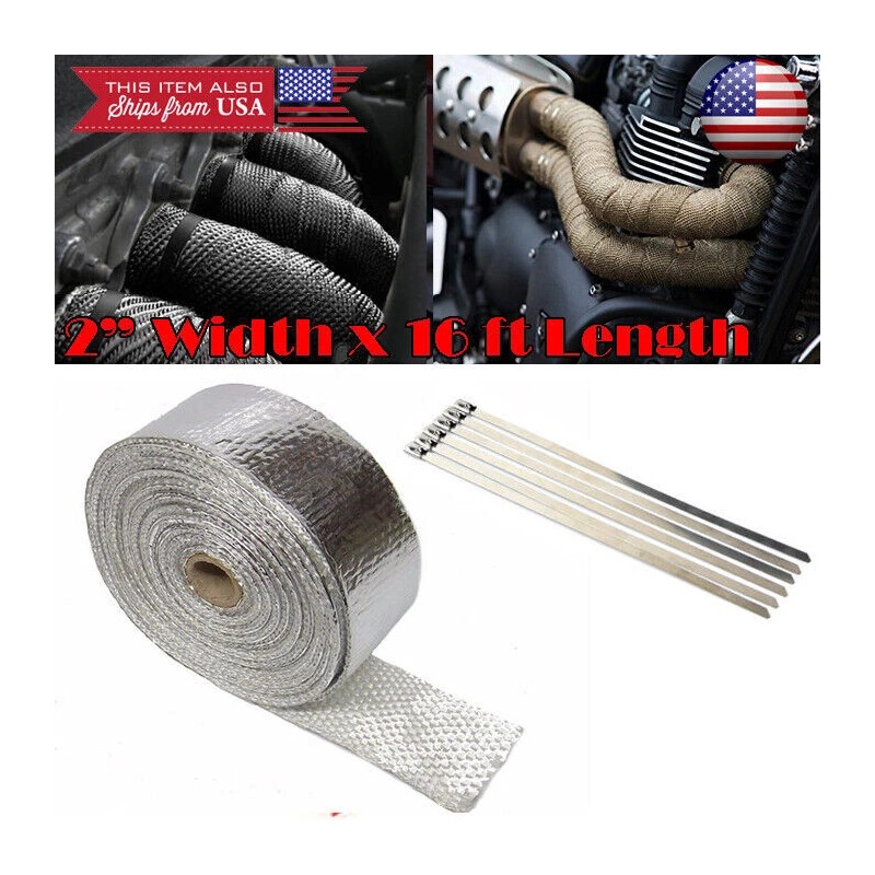 SDeelCase 2" 15ft Exhaust Header Downpipe Pipe Chrome Heat Wrap w/ 6 Ties For Hyundai Kia