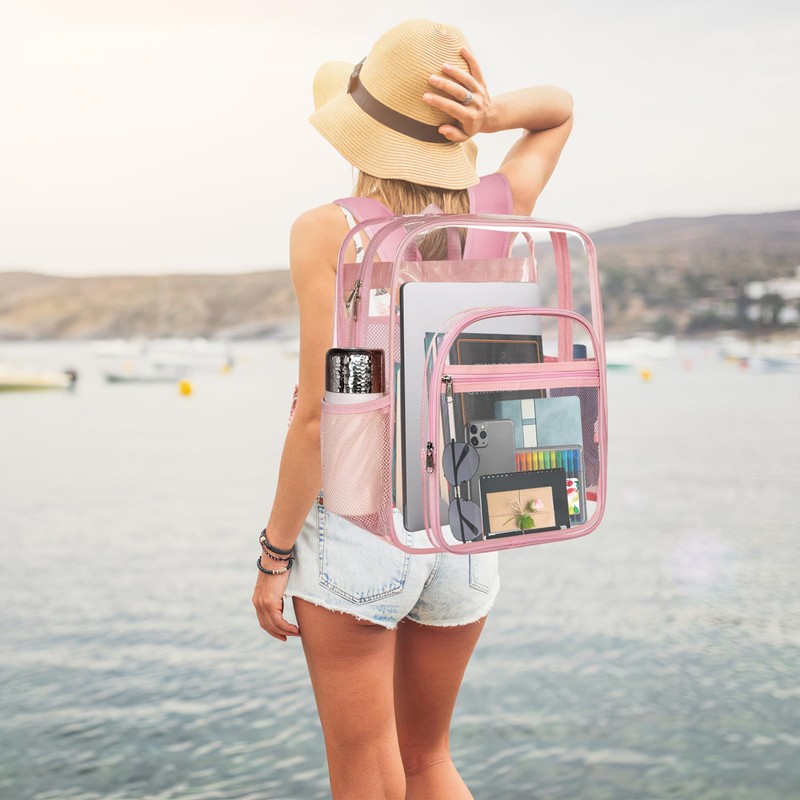 - Multipurpose Use - The transparent backpack is a versatile accessory that can be used in any setting. Whether you're heading work, or traveling, its clear design makes it convenient to organize and prepare for the day, as you can quickly see and grab anything you need.