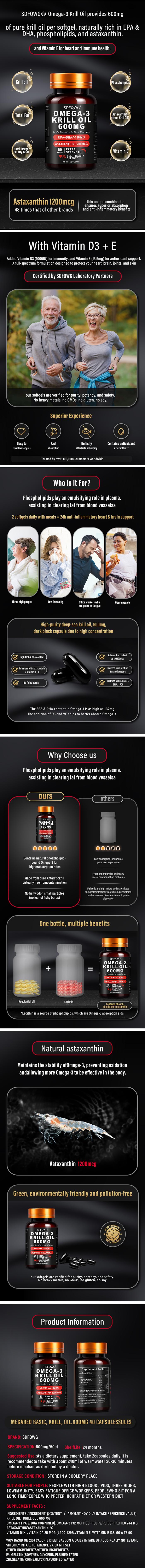 Boost Your Cardiovascular Health 🌟Elevate your cardiovascular health with SDFQWG Sports Research Antarctic Krill Oil. This supplement contains 600mg of high concentration krill oil, enriched with EPA & DHA Omega-3. Perfect for athletes and health enthusiasts, it focuses on cardiovascular health. Each pack includes 50 softgel capsules for daily use.Key Features 💊·High Concentration: 600mg per capsule.·Omega-3: Includes EPA & DHA.·Softgel Capsules: 50 count for daily use.·Cardiovascular Health: Supports heart and blood vessel health.Nutritional Support 🍎Tailored for enhancing cardiovascular well-being, this supplement ensures you receive necessary nutrients for healthy heart function. Trust SDFQWG for your health needs. Each capsule provides a precise dose of essential fatty acids, supporting your cardiovascular health goals.