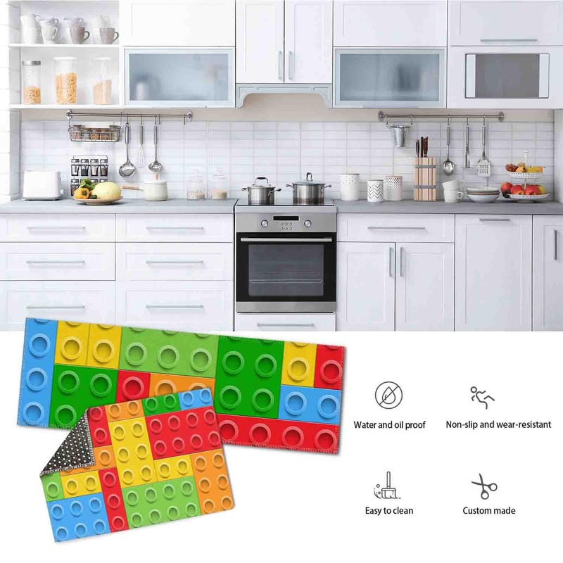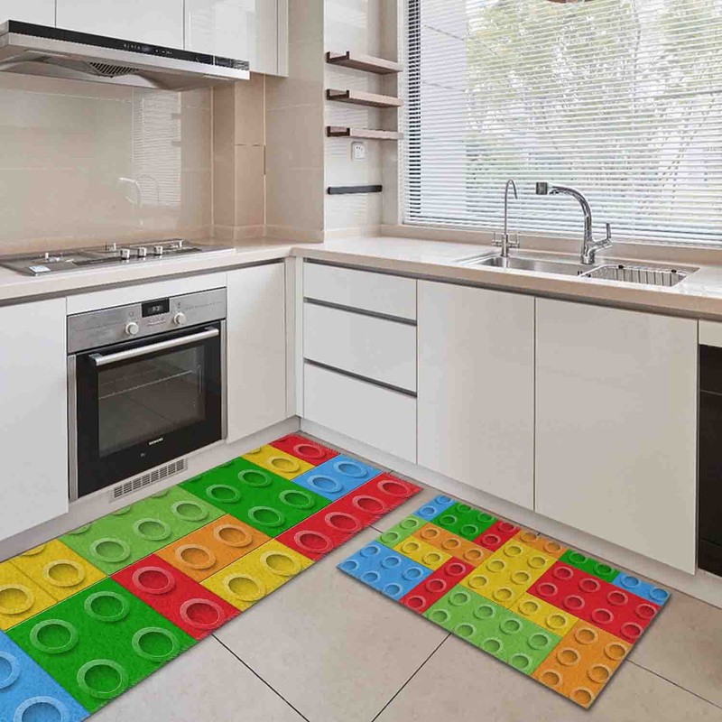 SDIZDIPK Kitchen Rugs and Mats Non Skid Washable,Colorful Bricks,Anti-Fatigue Floor Mat Set of 2 (60''X17''+ 30''X17'')