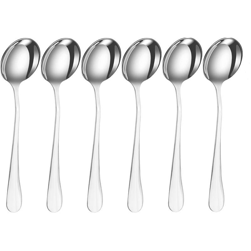 - The material of the soup spoons set of 6 ,i.e., stainless steel stands out for their durability and non-corrosion resistance, sturdy and not easily bent. Most importantly, it's dishwasher-safe.