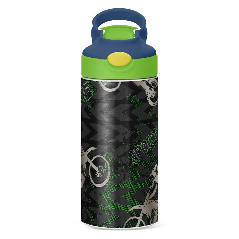 SDMKA Kids Water Bottle - 12 Oz Insulated Stainless Steel Water Bottles with Straw Lid for Girls/Boys, Leak Proof, BPA Free (Camouflage Motocross Riding)