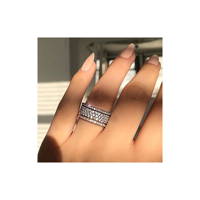Sdouefos 925 Sterling Silver Cubic Zirconia Eternity Engagement Wedding Bands Wedding Ring Anniversary Eternity Bands 3 Band Width Rings CZ Engagement Bridal for Women (O)