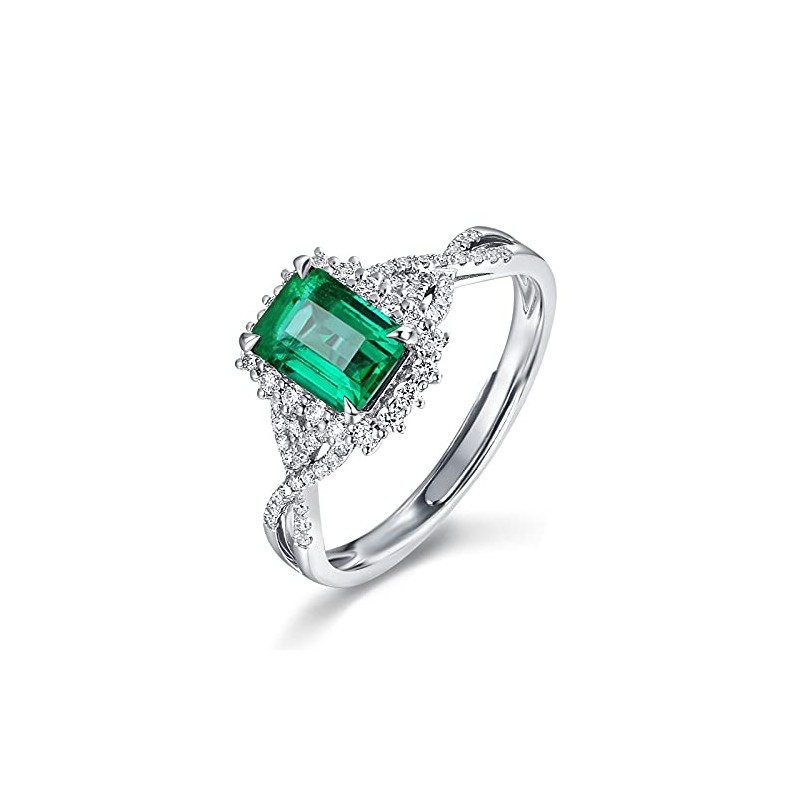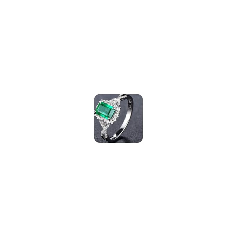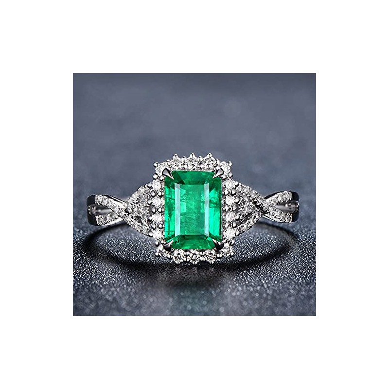 Sdouefos Women's 3ct Birthstone Solitaire Engagement Ring Emerald Cut Created Green Emerald White Gold Plated 925 Sterling Silver Engagement Wedding Ring (6)