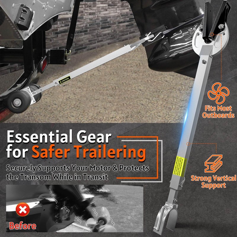 - Premium Construction: Our outboard motor transom saver is meticulously crafted from heavy-duty aluminum material, ensuring robust support and enhanced stability for your outboard motor during trailing operations