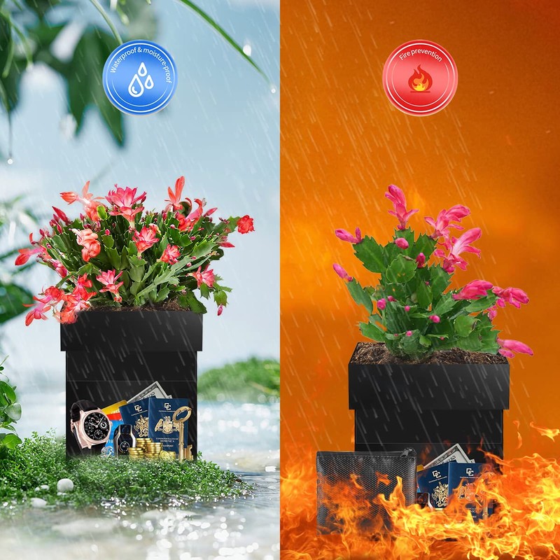 - 🌻Two Layer Design -Made of Steel+ABS,the upper part of this stash safe is made of ABS material, the lower part is made of Steel. it has the advantages of being anti-rust, waterproof, corrosion-resistant,Upper layer is a plastic flower pot, can be planted with succulents and flowers,(NOTE:Flower is not included on product)Down layer metal storage box, equipped with key lock,provide double safety for your stuffs thicken and heavy duty flower pot.