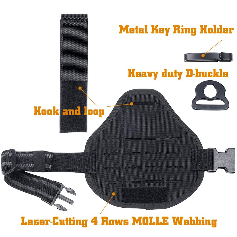 SdTacDuGe Tactical Laser Cut MOLLE Drop Leg Platform Universal Drop Leg Panel with Adjustable Hook-and-Loop Belt & Metal Key Ring Holder D Buckle