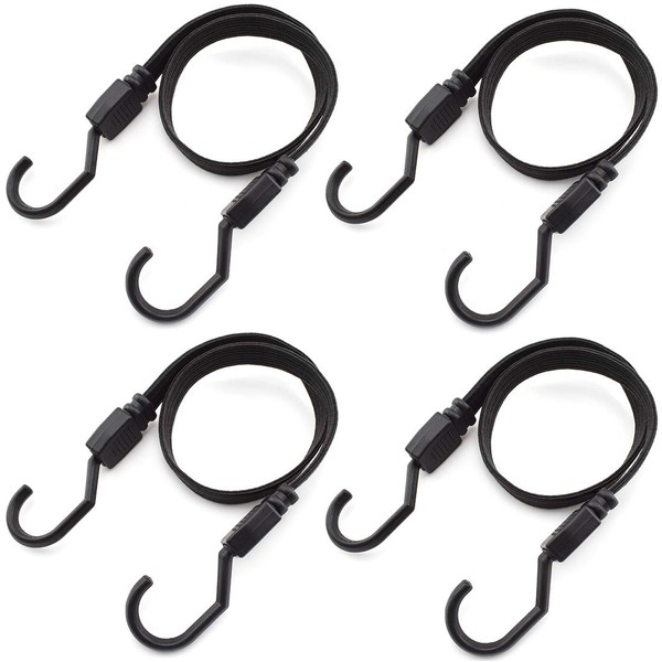 SDTC Tech 4-Pack 48 Inch Flat Bungee Cords with Hooks Premium Latex Bungie Straps Elastic Ropes for Luggage, Moving, Trunk, RV, Camping, Hand Carts