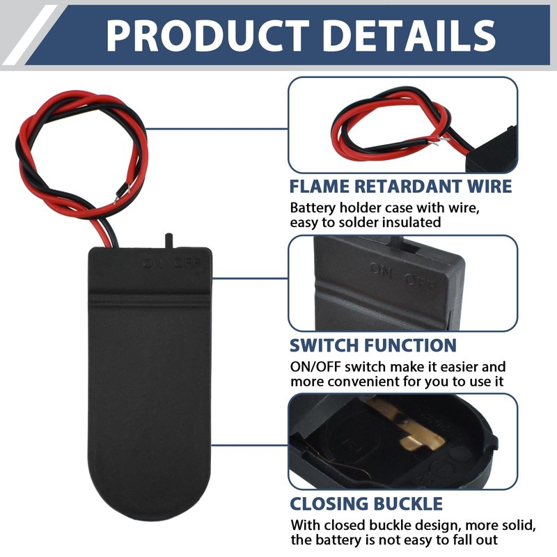 - Wide Application: Button Coin Cell Battery Holder with Leads Wires, suitable for electronics applications and small hobby projects, such as toys, electronic DIY, bread board power supply, LED lighting power supply, low voltage electrical equipment, radio