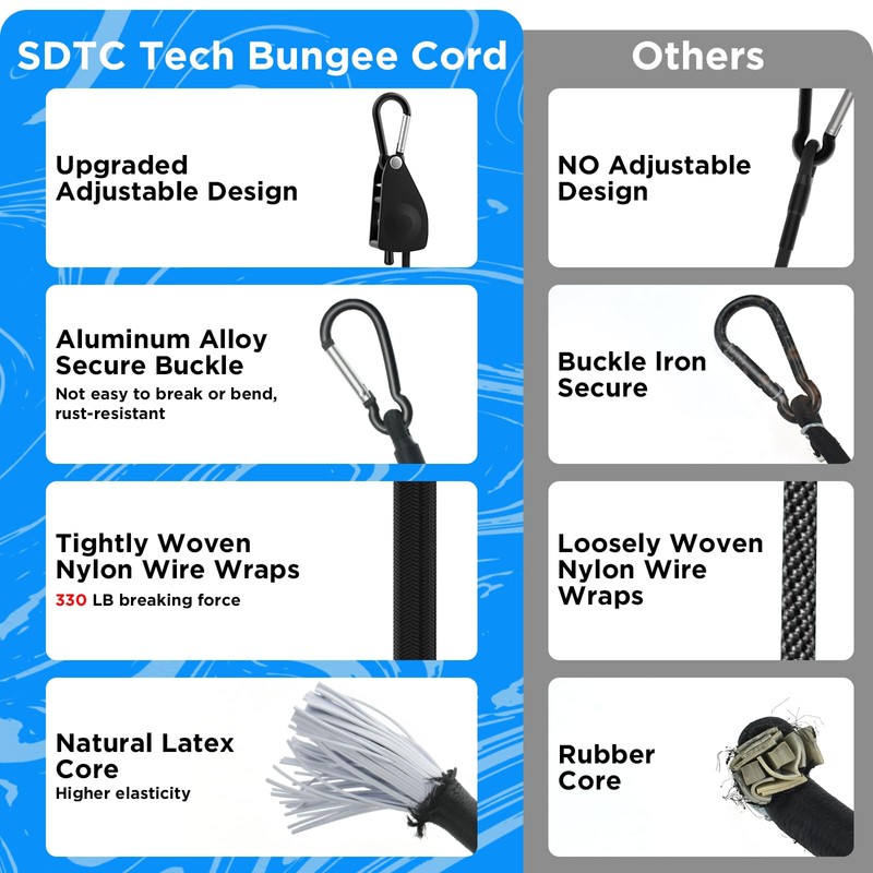 - ใ๐๐ฎ๐ฉ๐๐ซ๐ข๐จ๐ซ ๐๐ฅ๐๐ฌ๐ญ๐ข๐๐ข๐ญ๐ฒใThe rope tie down with durable metal ratchet is made of high quality durable latex and fiber, can be easily stretched up to approx 1.5 to 2 times the length, braided design, ensures good load bearing and long service life