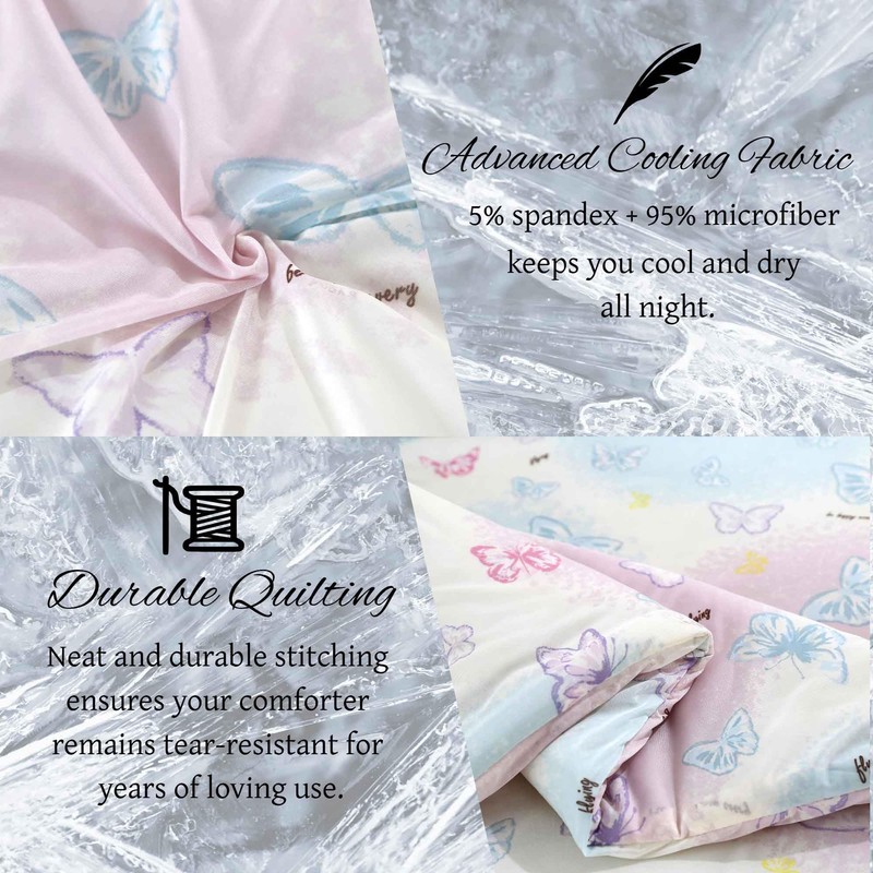 • SDY Butterfly Comforter set Full,3pcs Cooling Comforter for Summer,kawaii bed set Include 1 comforter+ 2 pillowcases.