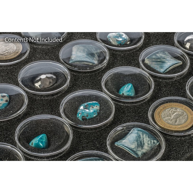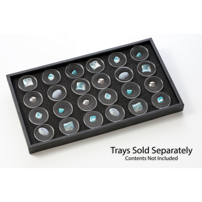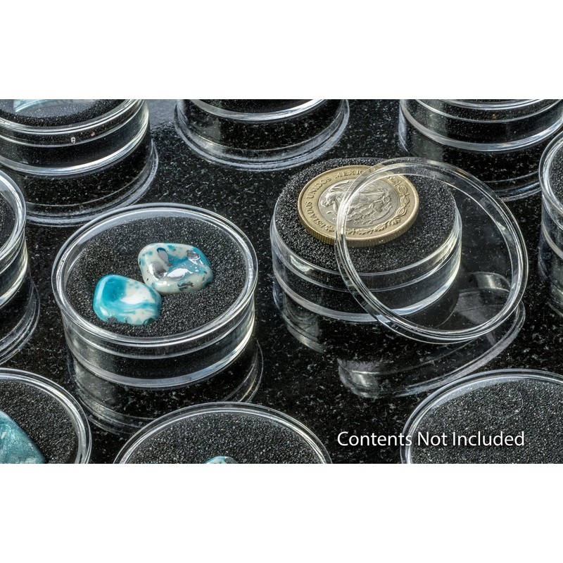SE Clear Round Display Containers with Snap-On Lids and Black Foam Fillers (Pack of 24) - GJ844BK