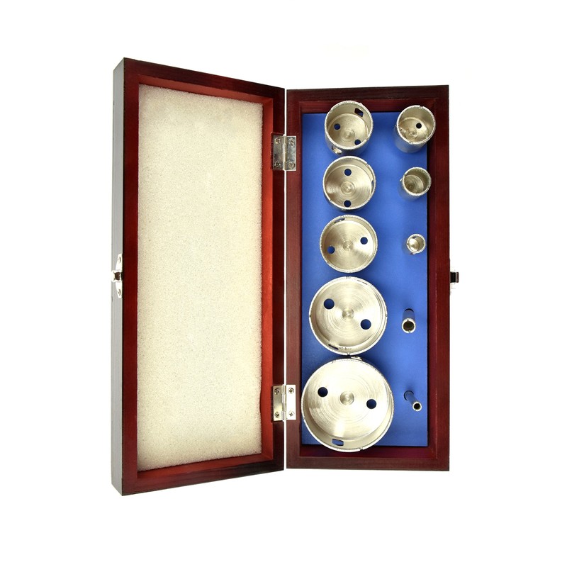 SE is proud to present our Diamond Hole Saw Set. It is useful for cutting holes in gemstones, glass, marbles, slate, tile, and for construction, hobby and craft work, and home improvement. This product is compatible with a vertical drill press.