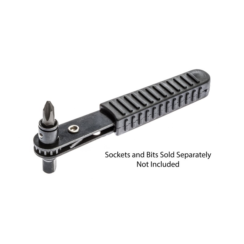 Features of this product include: -Length: 4-½” -Adapter size: ¼” -Two adapters for socket and screwdriver bit (socket and screwdriver bit not included) -Toggle knob for direction -Color: black