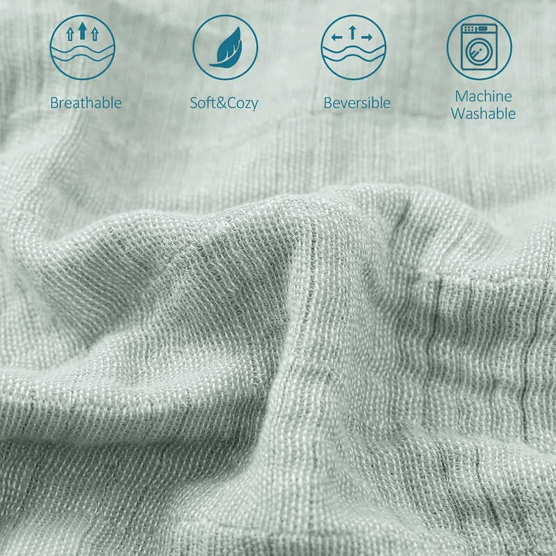 SE SOFTEXLY Cotton Muslin Blankets 4-Layer Linen Texture Blankets for Bed Couch,Thermal Blanket for Adults Lightweight Soft Breathable Throw Blanket for All Season Gauze Blanket(50"x60",Sage Green)