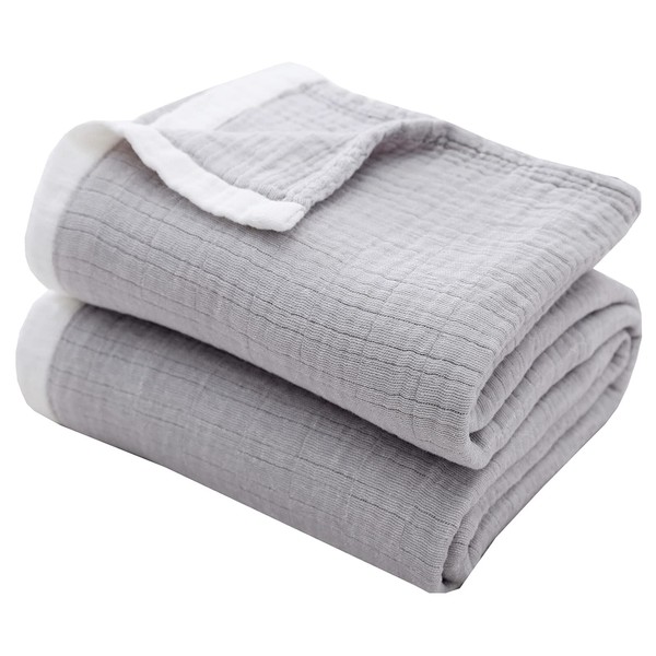 SE SOFTEXLY Cuddly Blanket 100% Cotton, 4-Layer Soft Cuddly Blanket, Muslin Blanket, Bedspread, Warm Sofa Corner Blanket, Couch Blanket for All Season, as Sofa Throw, Grey Blanket, 130 x 150 cm