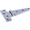 A T-Hinge is a hybrid combination between a butt and strap hinge. The horizontal part of the T goes on the frame, while the vertical part is fastened to the door or cabinet and is visible when closed. This highly decorative and functional hinge is flush mounted (not recessed) and can be used on doors, cabinets, dock boxes, ice chests, etc. Constructed of corrosion resistant investment cast 316 stainless steel. Installs with seven FH fasteners (not included).
