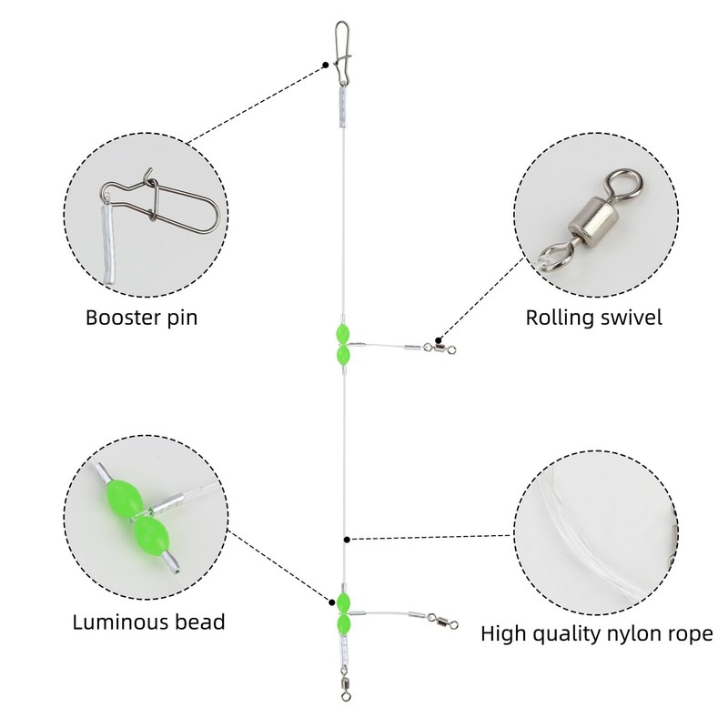 - Package Contents: Five pieces of sea fishing gear are included, and each hook has two locations—longest line: 80 cm; longest branch line: 40 cm