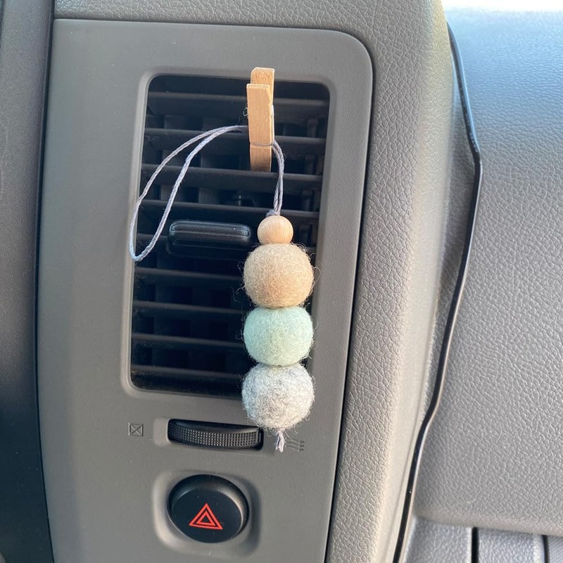 • This is a handmade car or closet air freshener using 100% wool, wood bead, cord, removable mini wood clip. This does not contain any Essential Oil nor Fragrance. Simply add a few drops of essential oil or fragrance to the felt wool and/or wood bead. You can hang it on your car's rear view mirror, clip it on the air vent of your car, clip or hang in your office, or add to your keychain.