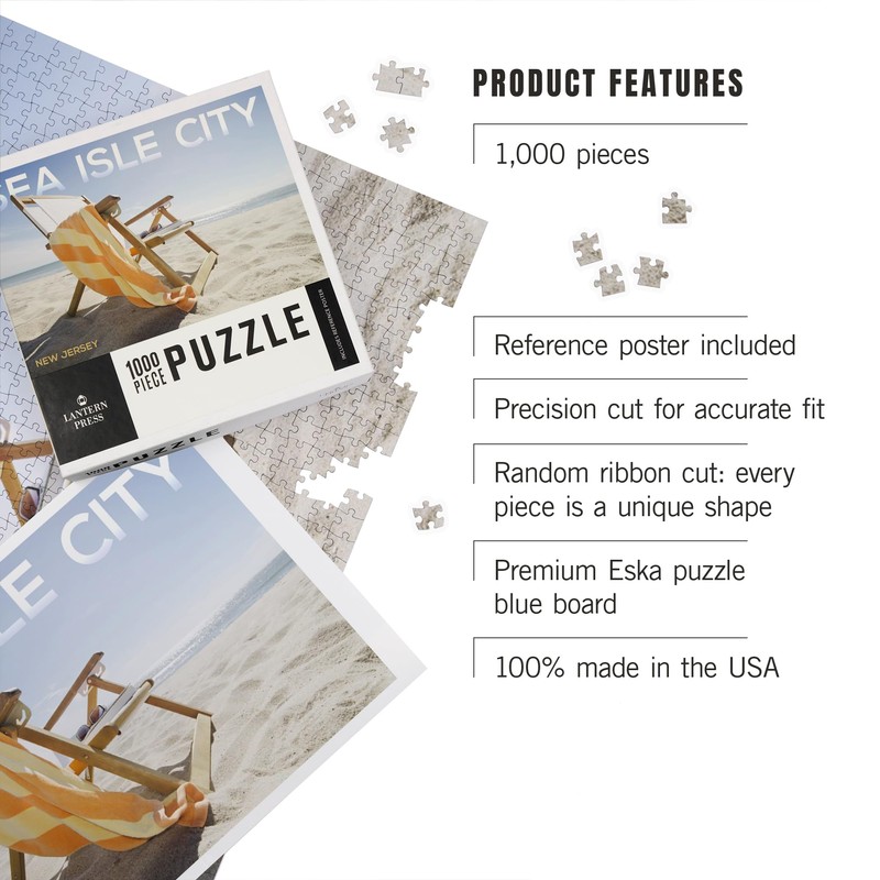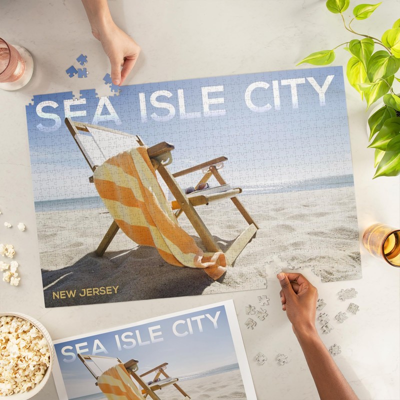 - Sea Isle City, New Jersey, Folding Beach Chair (1000 Piece Puzzle, Challenging Jigsaw Puzzle for Adults, Made in USA).