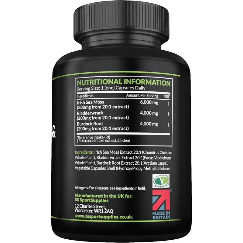 - ✅ MICRONUTRIENTS FROM THE NORTH ATLANTIC – Designed to be ethical, convenient and nutritionally powerful, SS Sport Supplies capsules contain Chondrus Crispus which is known as Irish Sea Moss, Fucus Vesiculosus know as Bladderwrack and Arctic Kappa which is know as Burdock Root. Considered this premium supplement to add to your daily routine.