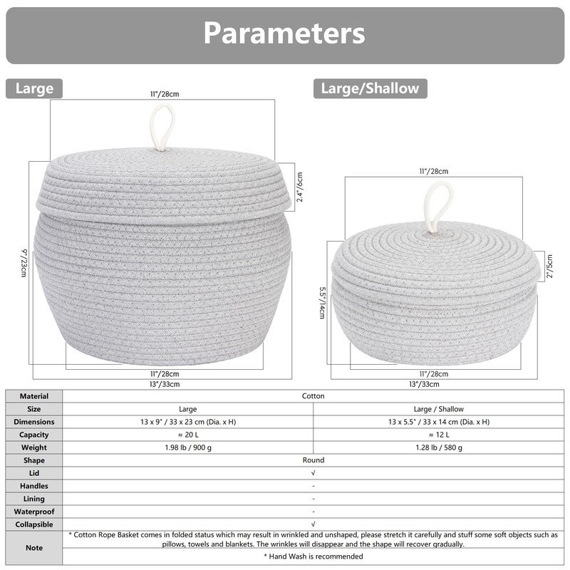 - Natural Cotton Material - The storage basket is made of natural cotton material which is soft, breathable and durable