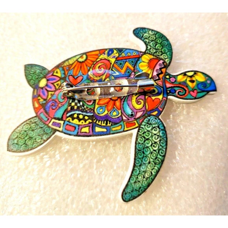 Sea Turtle Multicolor Floral Flat Acrylic Pin Brooch Jewelry