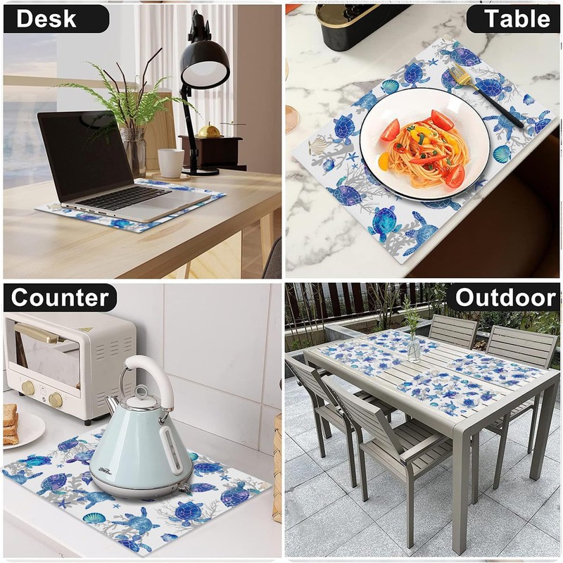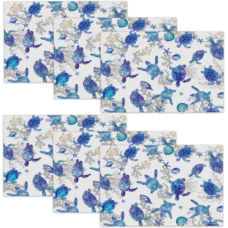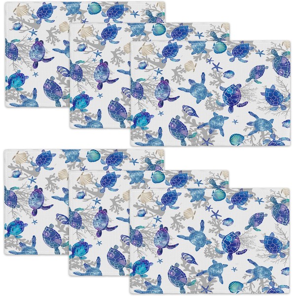 Sea Turtle Placemats Set of 6 Ocean Turtle Table Mats Washable Nautical Coastal Place Mats for Home Party Indoor Kitchen Dining Table Decoration 12x18 Inch