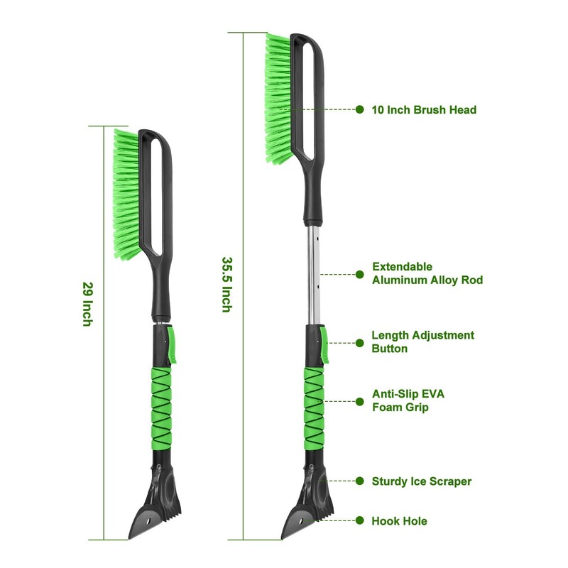 - Extendable Aviation Aluminum Alloy Rod -- Telescoping shaft extends up to 35.5", allowing effortless reach across car’s roof and windshield.