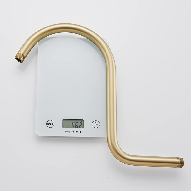 SEABEFORE 13 Inch S-Shape Shower Arm Gold Gooseneck Shower Head Extension with Unique Flange, Standard 1/2" Connection