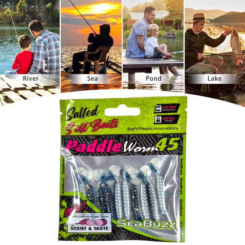- Design – Made of high-quality materials and expert design make Seabuzz "Paddle Worm" more realistic and attractive. The soft plastic fishing lures with vivid design perfectly mimic irregular baitworm actions.