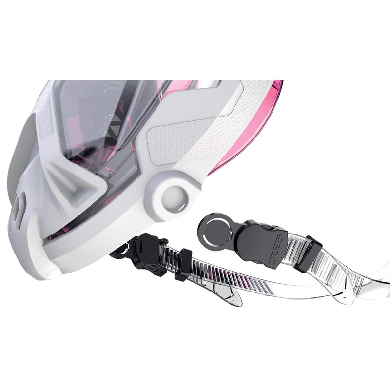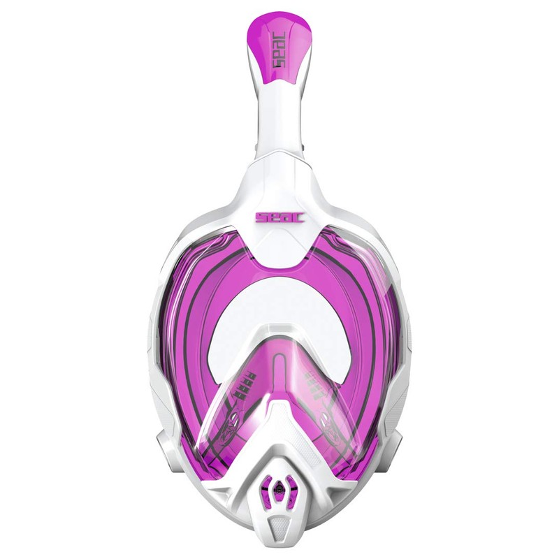 SEAC Magica, Full Face Antifog Snorkelling Mask with Soft Facial Skirt in 2 Sizes, Exhalation Valve and Dry Snorkel Top, White/Pink, Small/Medium