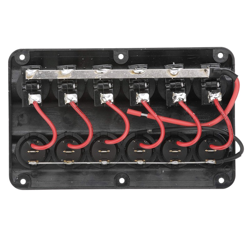 Seachoice 12331 LED 12V 6-Switch Distribution Panel – Molded Black Plastic – Round Rocker Switches – Pre-Wired