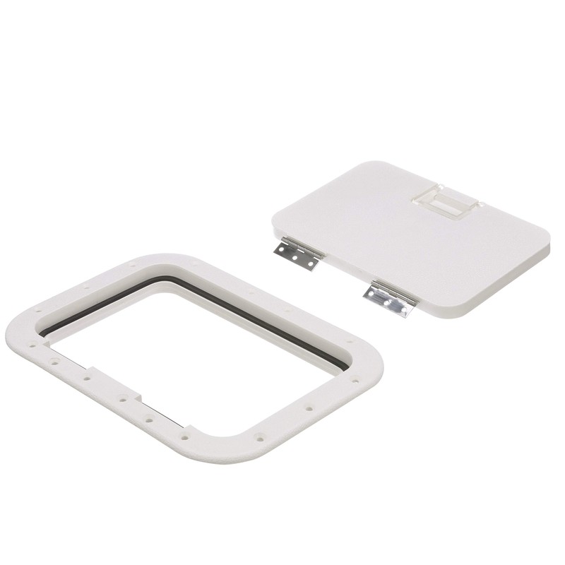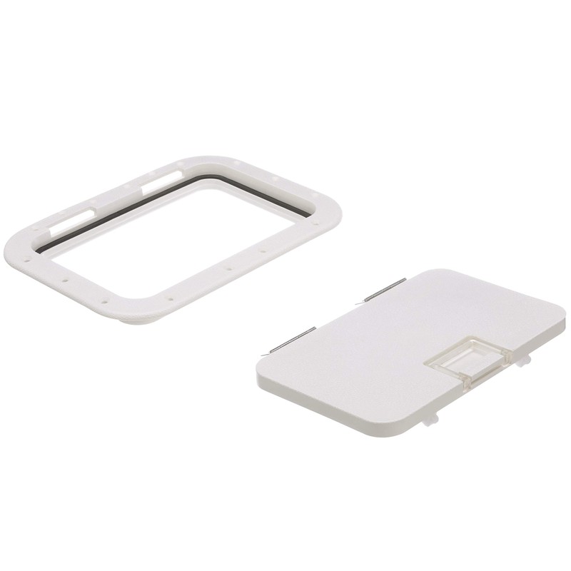 Seachoice White Hinged Hatch, 7 in. X 11 in. Inner Dimensions, Acetone Proof Polypropylene