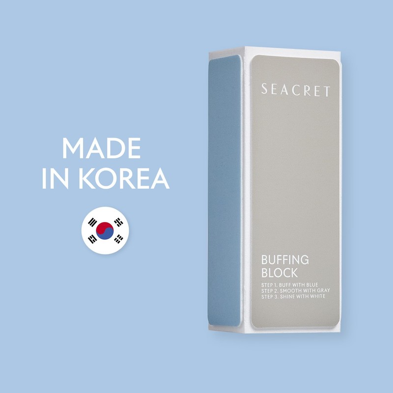 SEACRET 3-way nail buffer block gives your nails a smooth, shiny finish. Each side serves a different purpose, buffing, smoothing, and adding shine to your nails in seconds.
