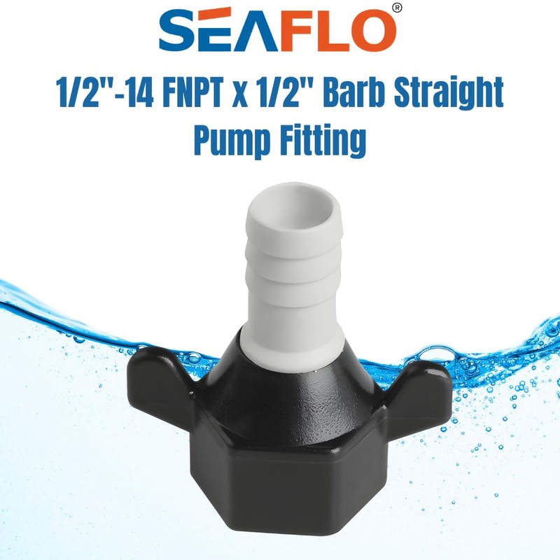 SEAFLO (NO: 51F01) 1/2"-14 FNPT x 1/2" Barb Straight Pump Fitting for SHURFLO, SEAFLO, Circle River, Johnson, Jabsco, FLOJET, REMCO, Lippert, USA ADVENTURE and other Pumps (100-Pack)