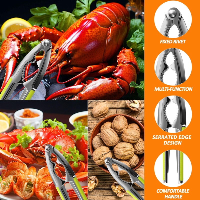 - Essential Tools for Seafood:These crab crackers and tools will replace your hands to deal with crab, lobster, scallop, oysters and more. Instead of the laborious and messy disassembling of the lobster and crab manually, you don't have to worry about the hard shell or not being able to get the whole meat out, using seafood tools allows you to enjoy seafood elegantly and simply.
