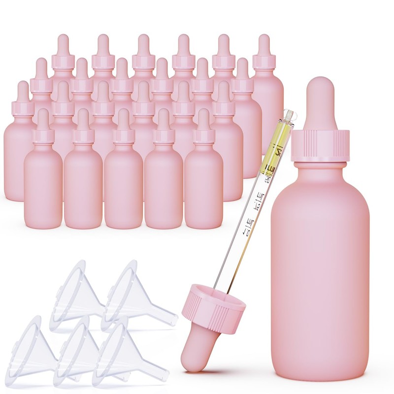 seafulee 24 Pack 2 oz Pink Coated Glass Dropper Bottles (60ML) with Glass Eye Dropper, UV Safe Bottles for Essential Oils and Aromatherapy …