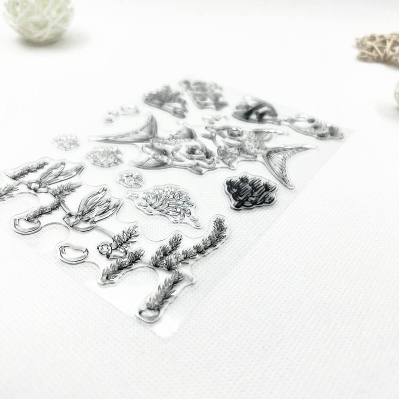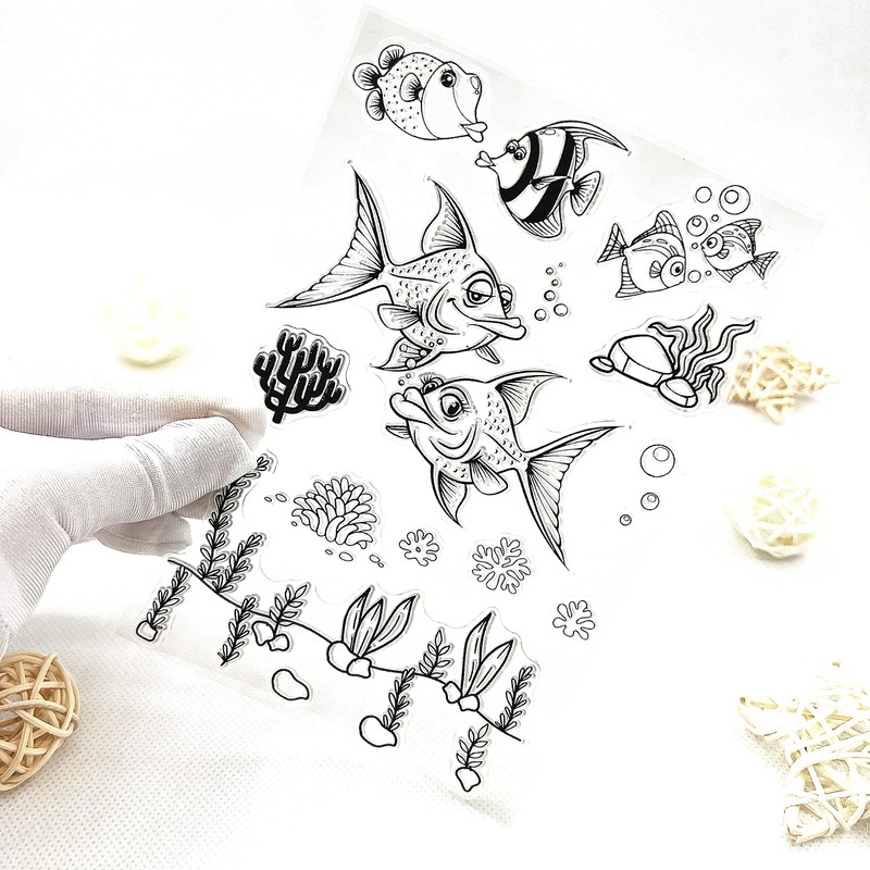 - 【Design:】Seagrass Coral Sea Fish Seaweed Pattern Clear Stamps Ocean Fish Transparent Seal Stamps