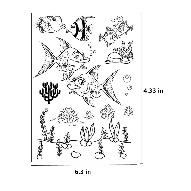 Seagrass Coral Sea Fish Pattern Clear Stamps Ocean Fish Transparent Seal Stamps for Holiday Card Making Decoration and DIY Scrapbooking Album DIY Crafts