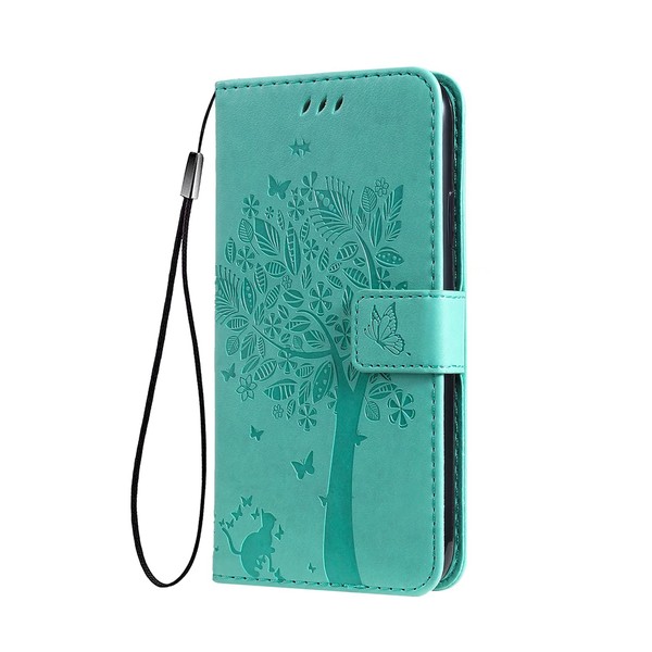SEAHAI Case for OPPO A40 4G / OPPO A40M / OPPO A60 5G Wallet Case, Pretty Embossed Leaves and Cat Pattern Premium PU Leather Book Style Flip Cover Shockproof Case, Green