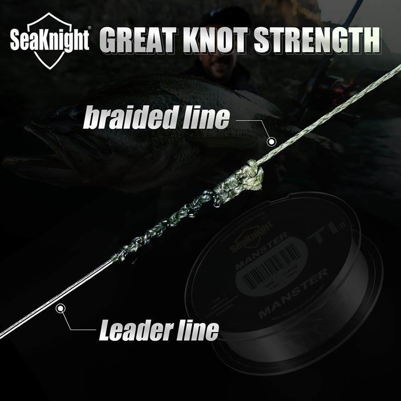 SeaKnight T1 II Double Layers Fluorocarbon Coated Line 50m/100m Carp Fishing Line Transparent Invisible Monofilament Fast Sinking Clear Leader Line for Saltwater Sea Fishing 3-100LB