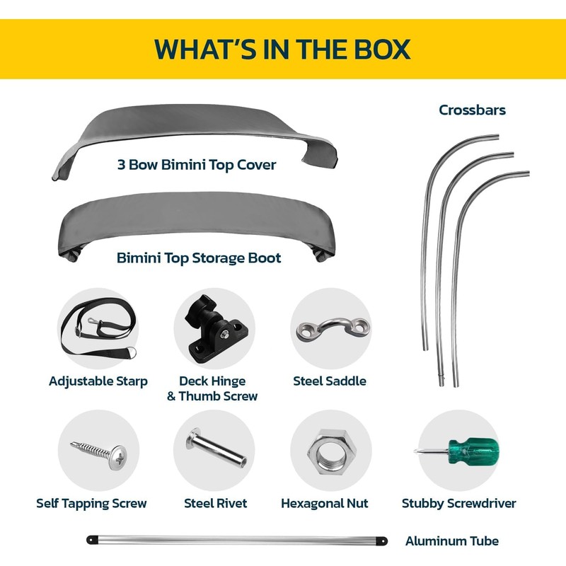 Seal Skin Covers 3 Bow / 4 Bow Bimini Top for Boats, Marine Grade Waterproof Canopy Cover with Frame, Durable Sun Shade Cover, Mounting Hardware, Rear Straps & Storage Boot (6'L x 91-96" W x 36" H)