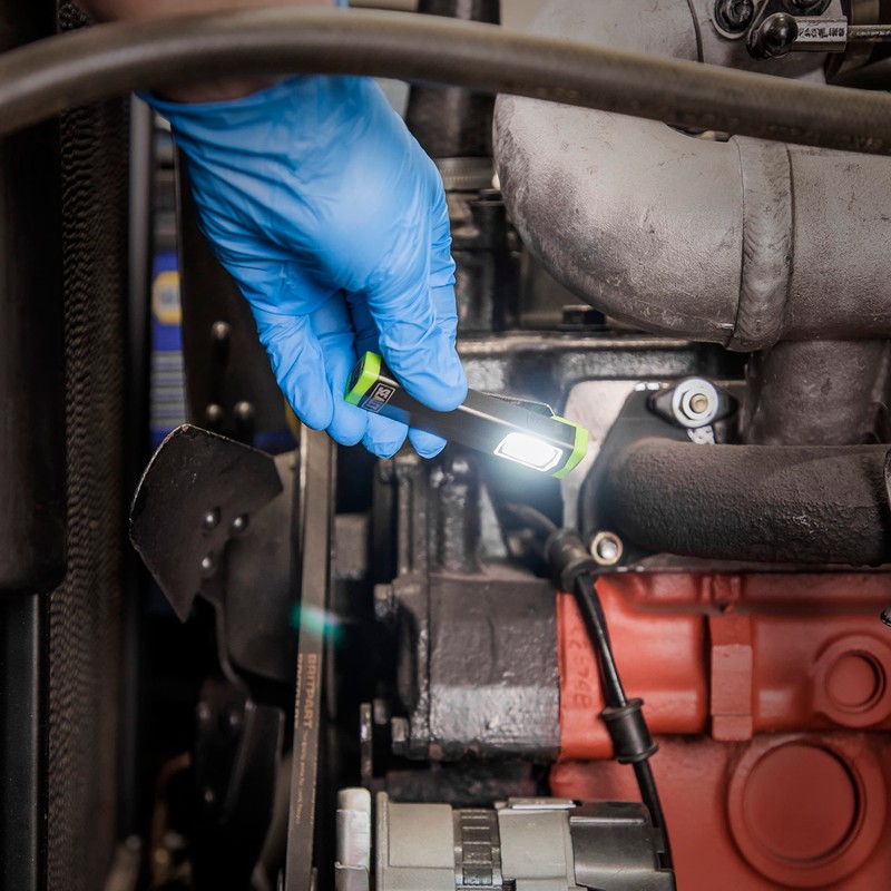 - Side mounted push-button to switch between two brightness settings of 100 or 300 lumens.